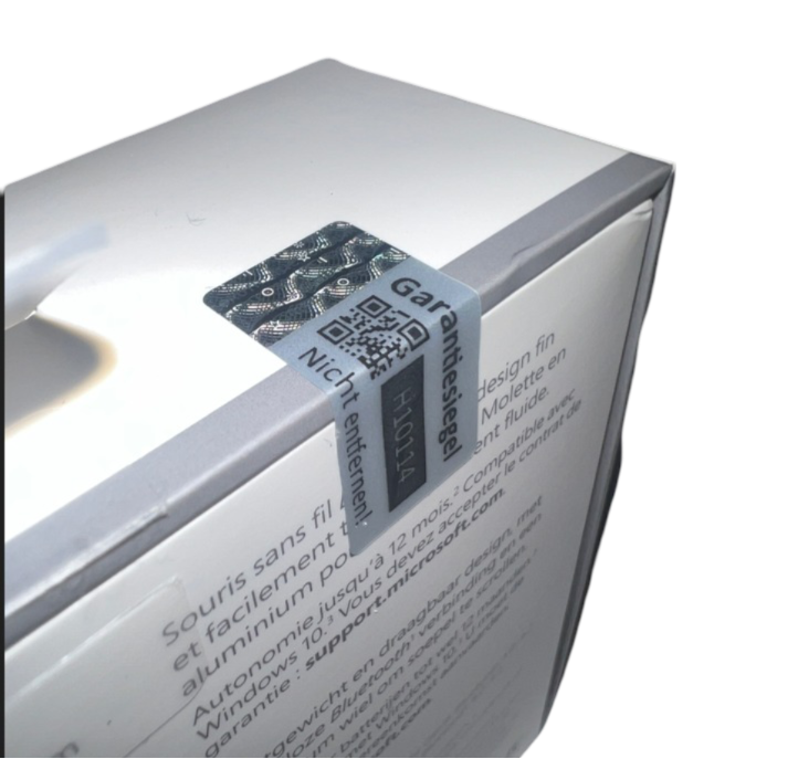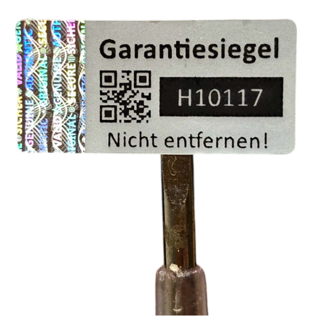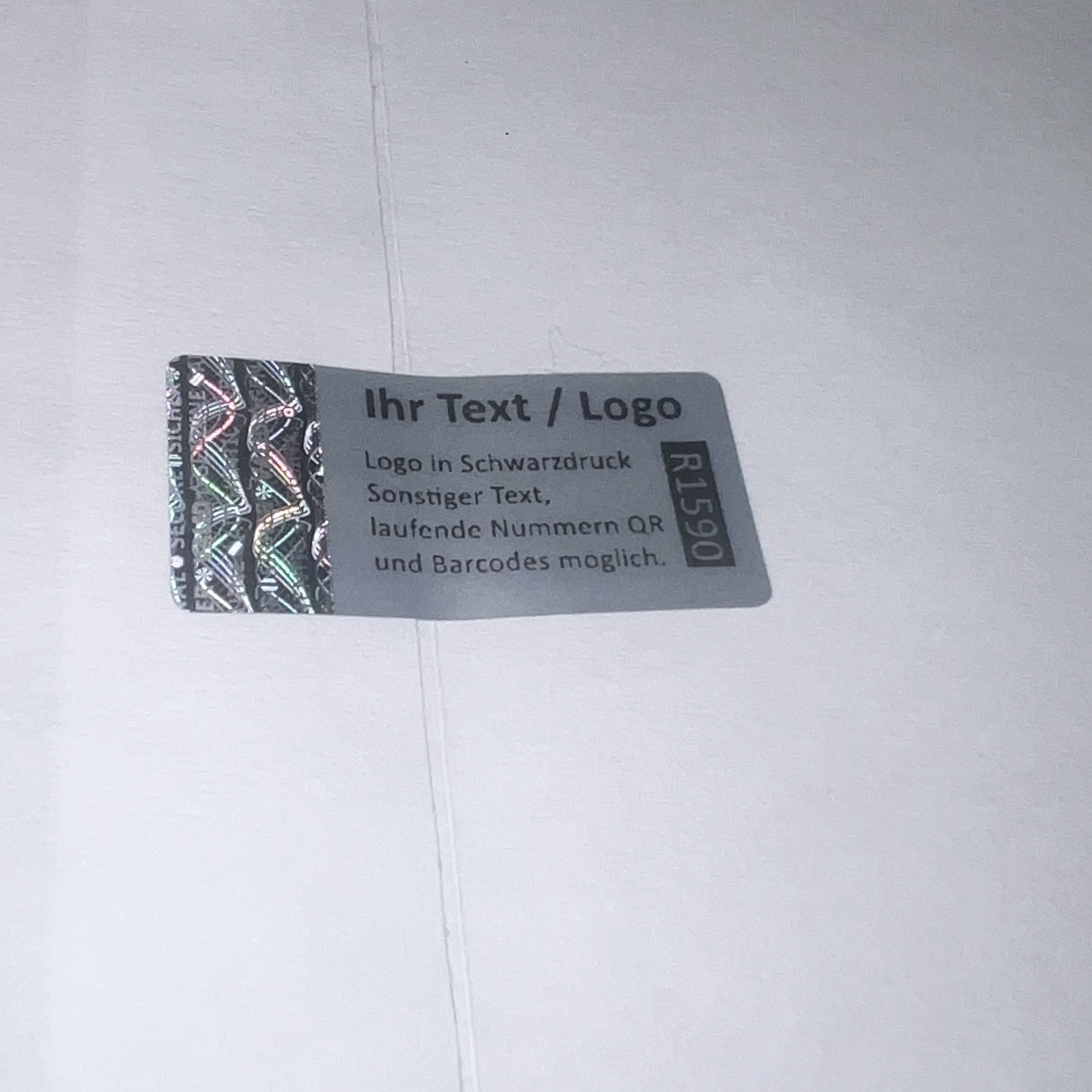 - Im Hologramm-Steifen sind die Wörter "Sicher, Genuine, Valid, Authentic, Original, Secure" mit diversen Mustern und Sicherheitssymbolen vorhanden.