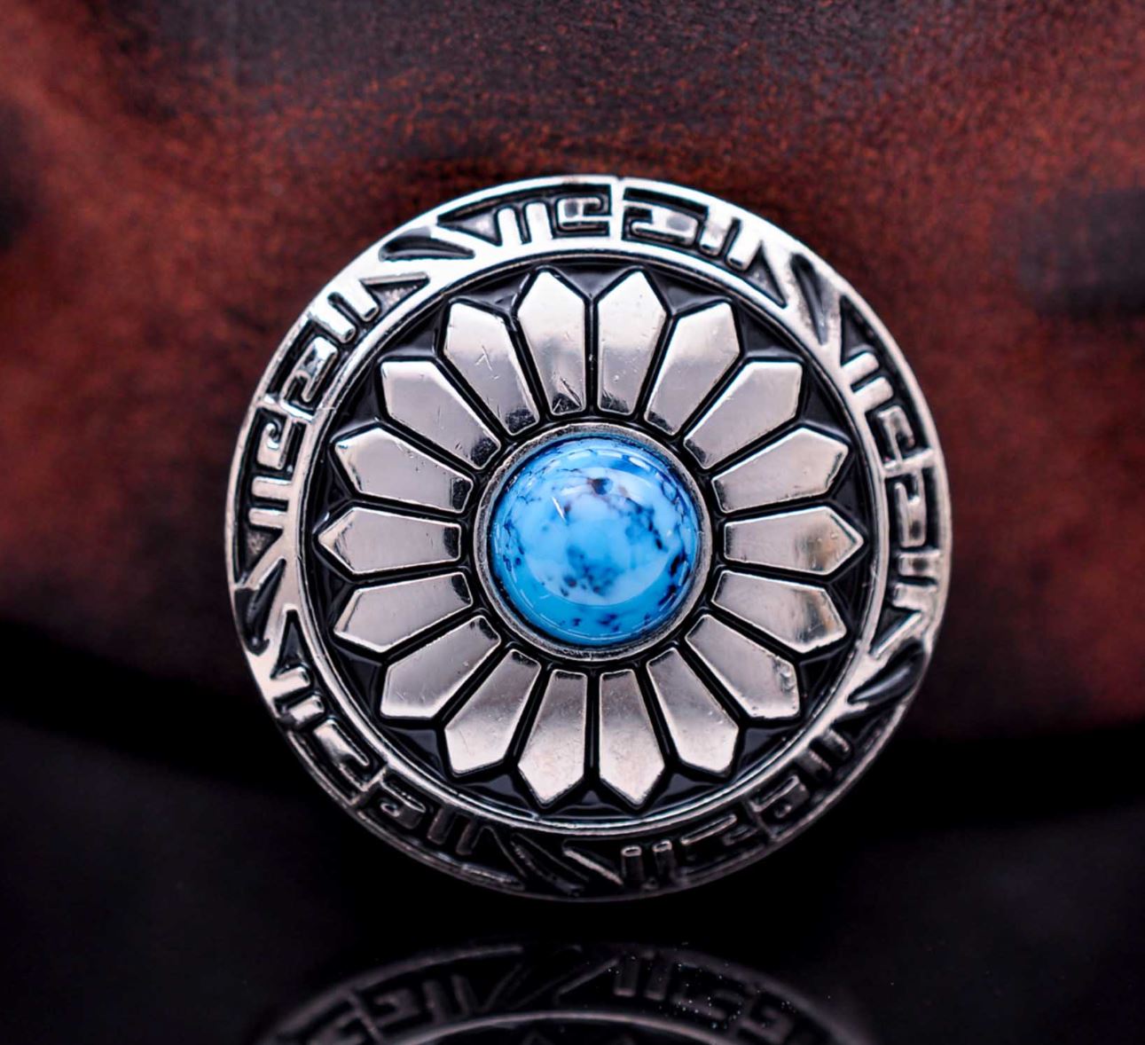 Produktinformationen "Blume 25 mm Western Concho zum Schrauben blau"