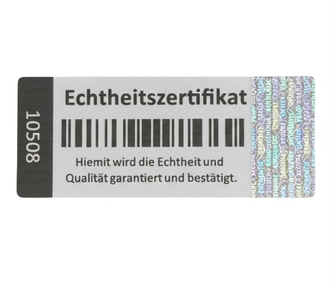 Produktinformationen "Echtheitszertifikat 5x2 cm mit Hologramm und Seriennummer"