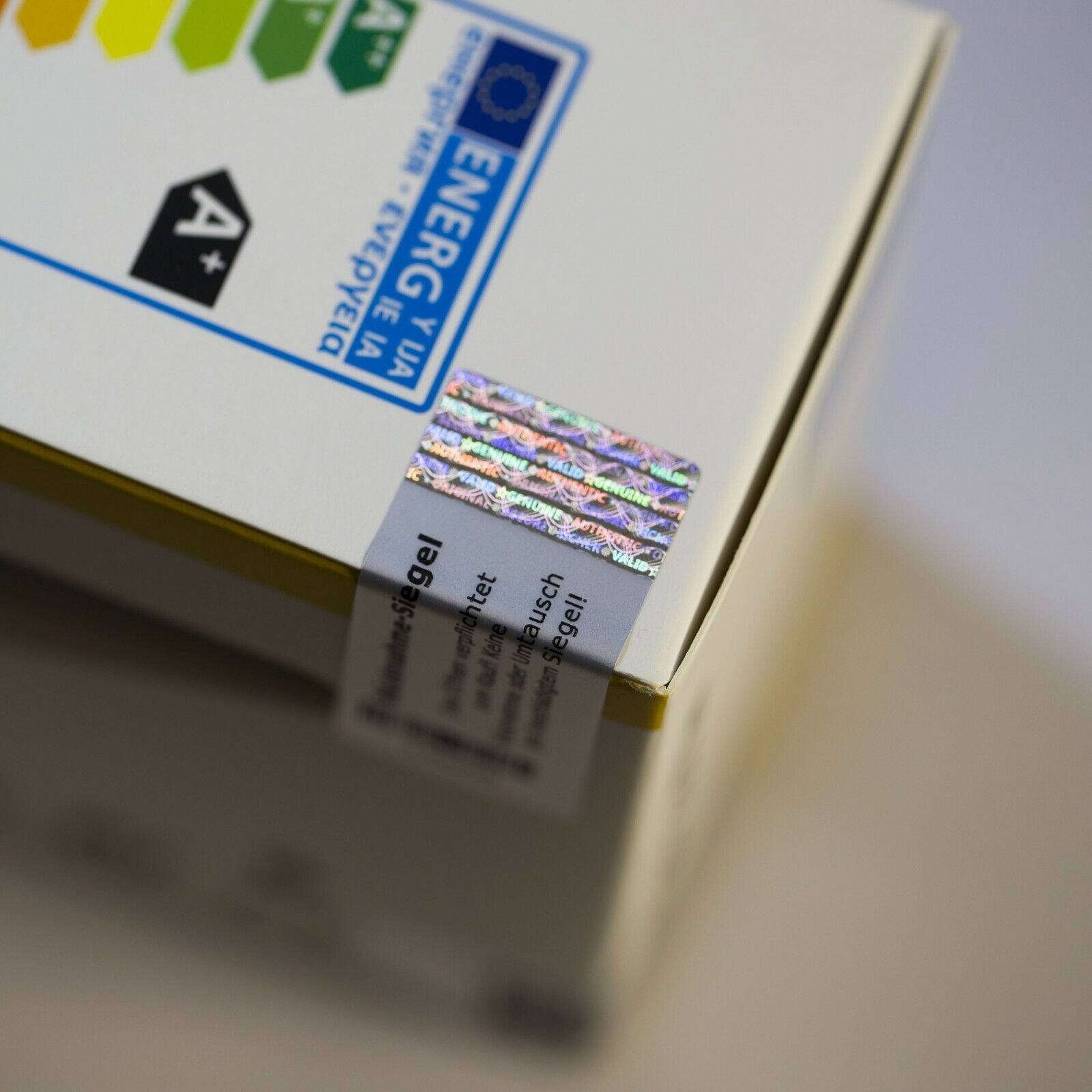 Der Hologrammstreifen mit Begriffen wie Genuine, Valid und Original erschwert Reproduktionen und dient als schnelles Echtheitsmerkmal.