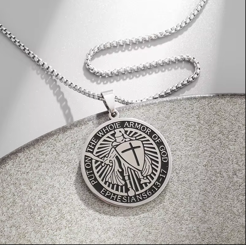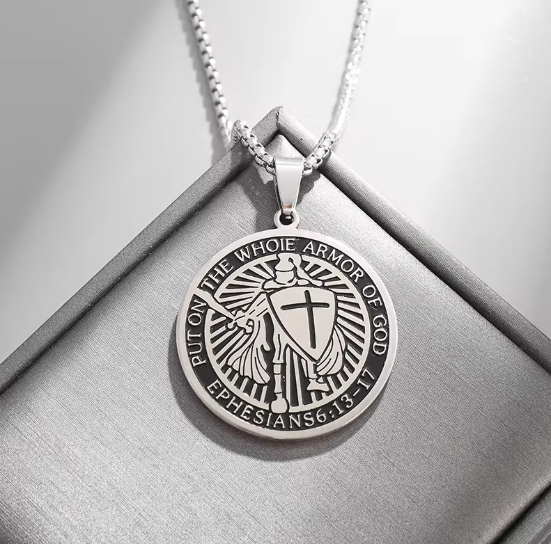 Motiv: Tempelritter + Aufschrift: "Put On Your Whole Armor Of God", "Ephesians 6:13-17"