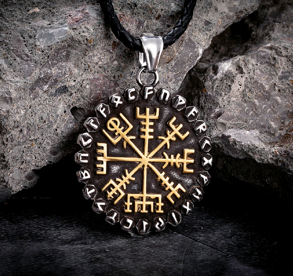 Nordische Halskette Kompass Rune Wikinger Amulett Anhänger 3,7 x 3,9 cm