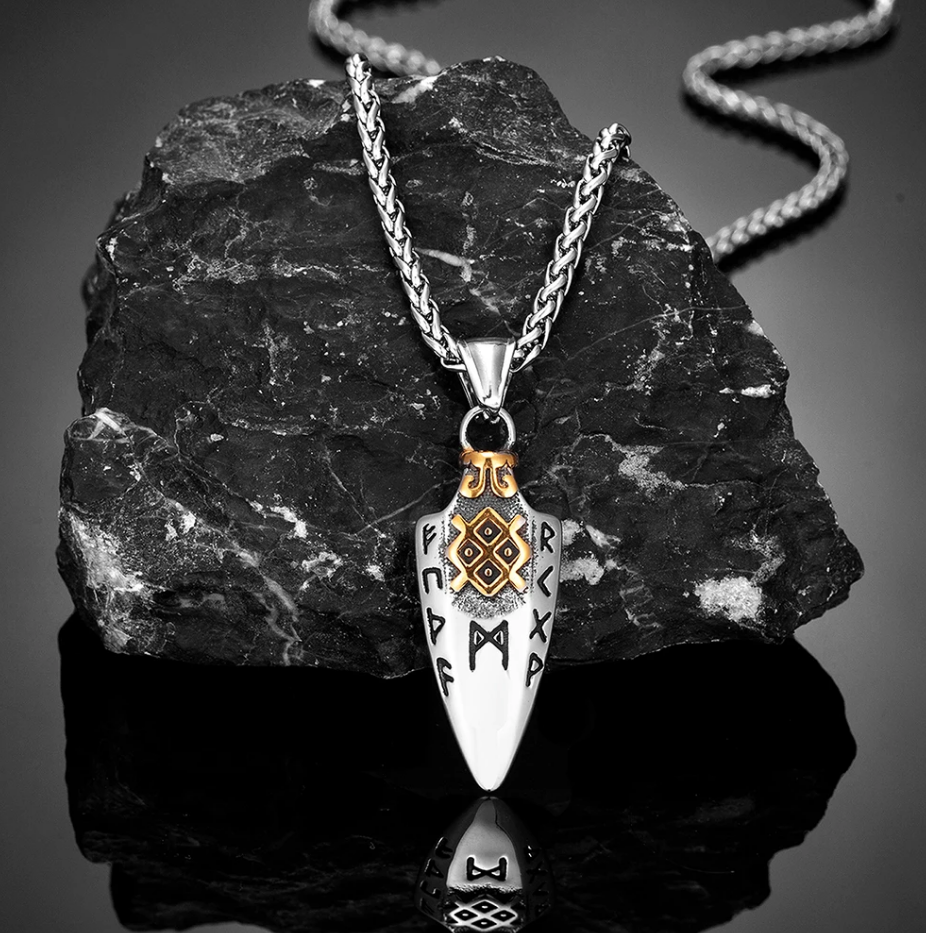 Nordische Halskette Odins Speer Keltisch Gungnir Valknut Rune Wikinger Gold 60cm