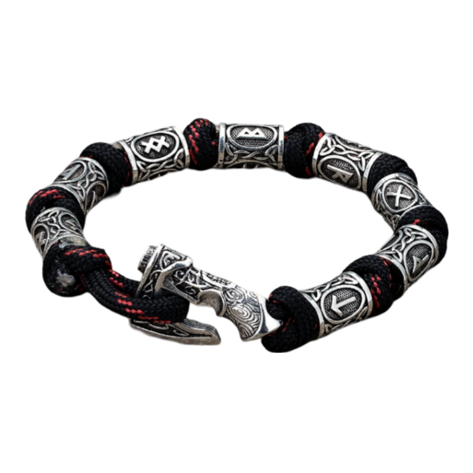 Nordisches Armband Keltisch Mjölnir Runen Wikinger Seil Amulett rot schwarz 21 cm