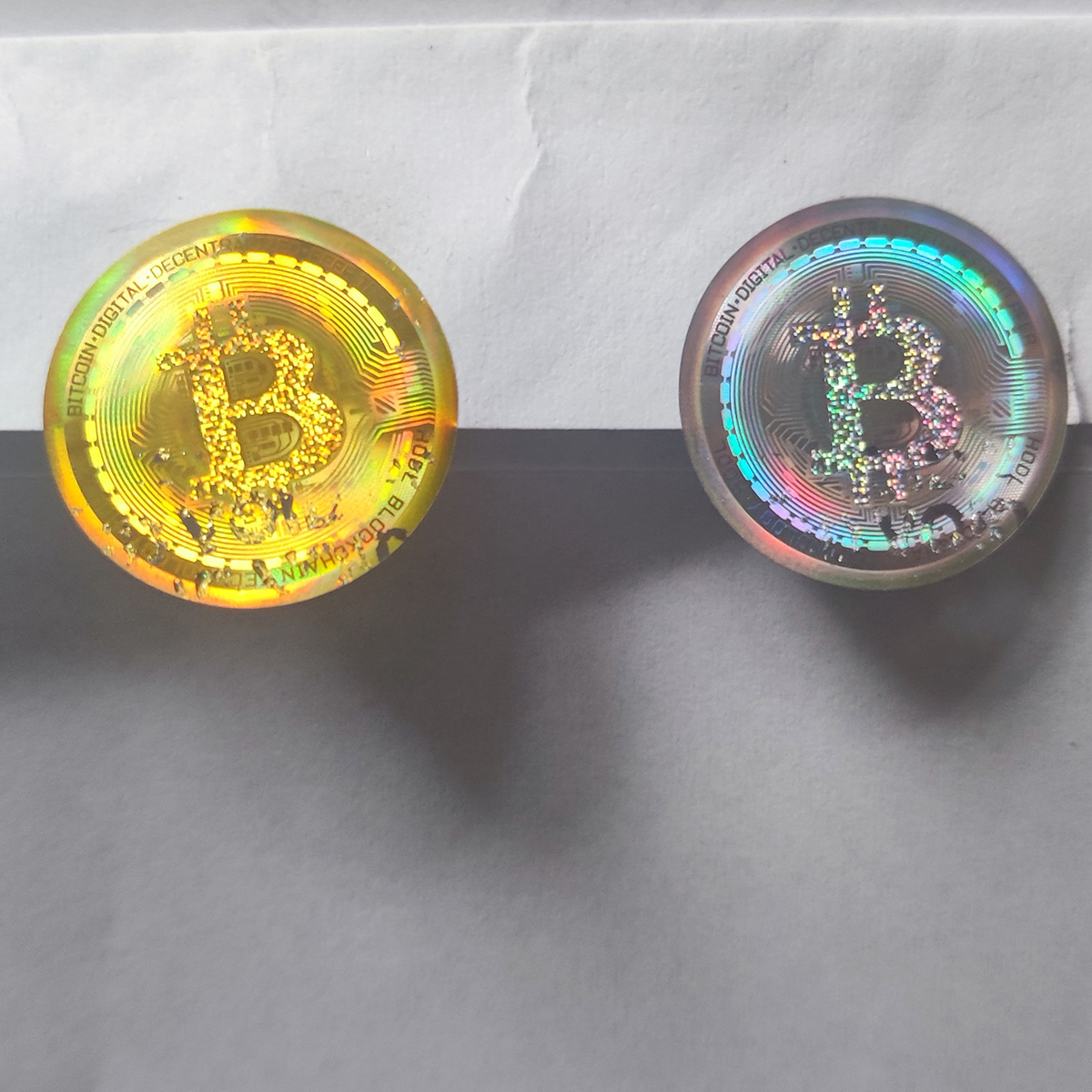 Produktinformationen "Bitcoin BTC Hologramm-Aufkleber 20 mm silber oder gold"