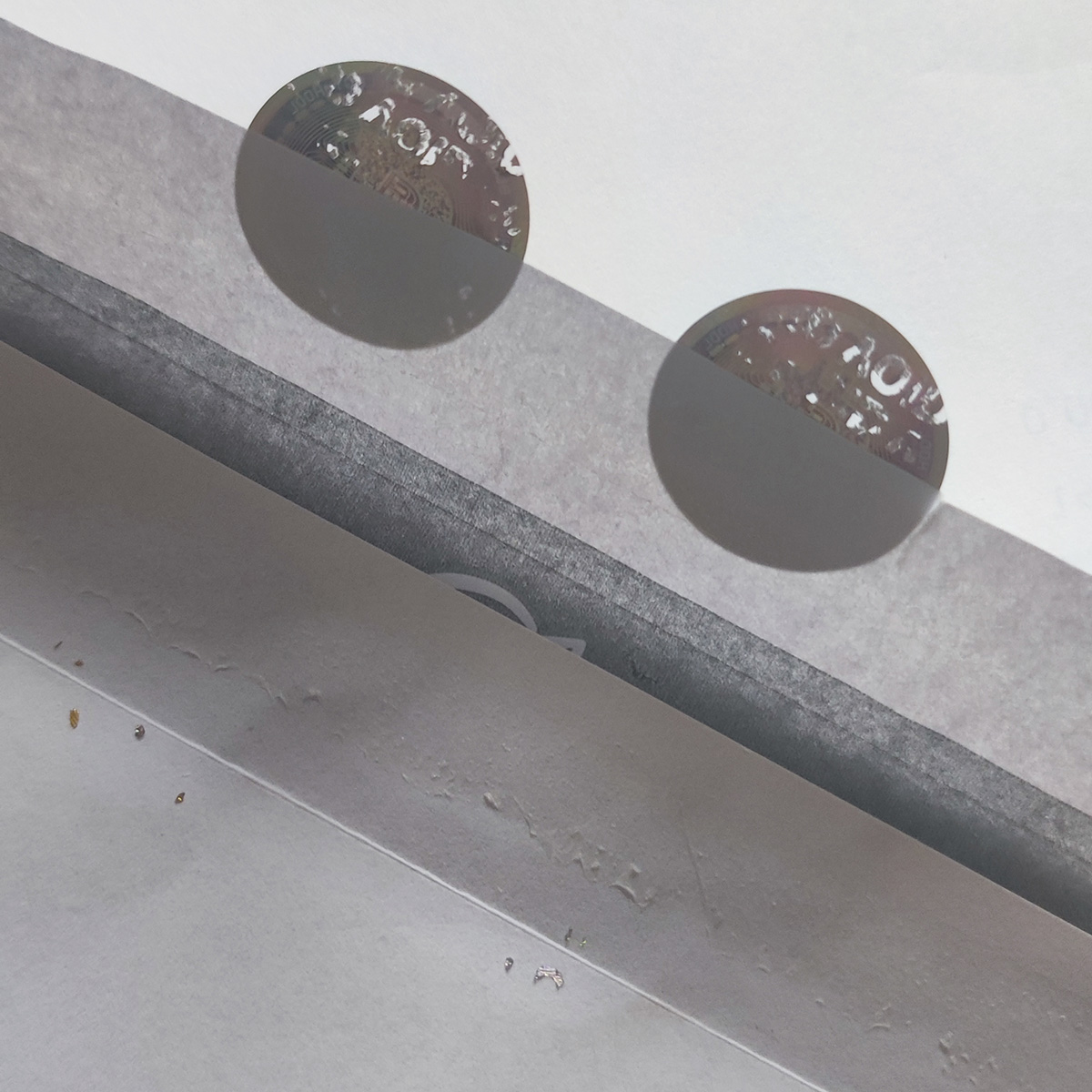 Ein Ablösen ohne sichtbare Beschädigung der Silberschicht ist unmöglich (Tamper-Evident-Effekt auf geeigneten Oberflächen).