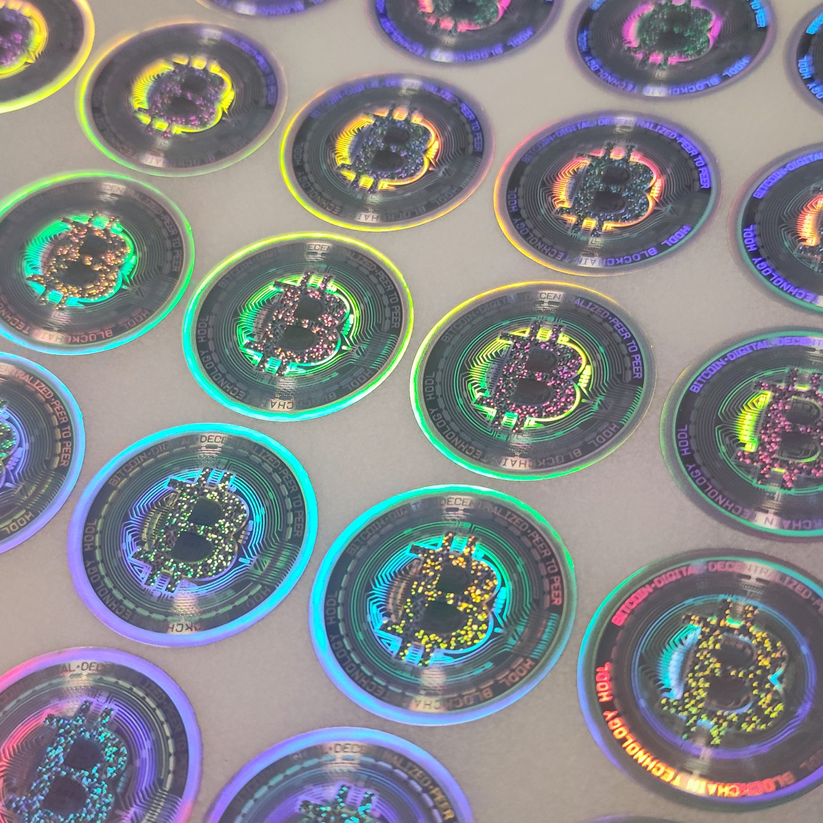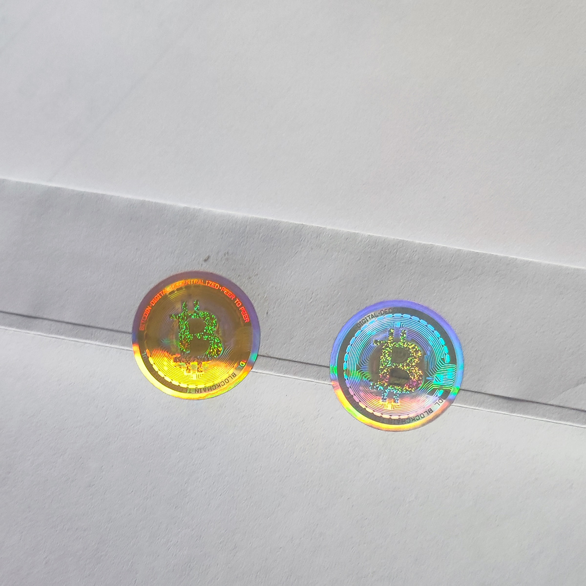 Sichern Sie Ihre Produkte mit einem hocheffektiven Originalitätsmerkmal ab. Dieser runde Bitcoin-Hologramm-Aufkleber kombiniert eine exklusive Krypto-Optik mit zuverlässigem Manipulationsschutz für Ihre Dokumente oder Hardware-Wallets.
