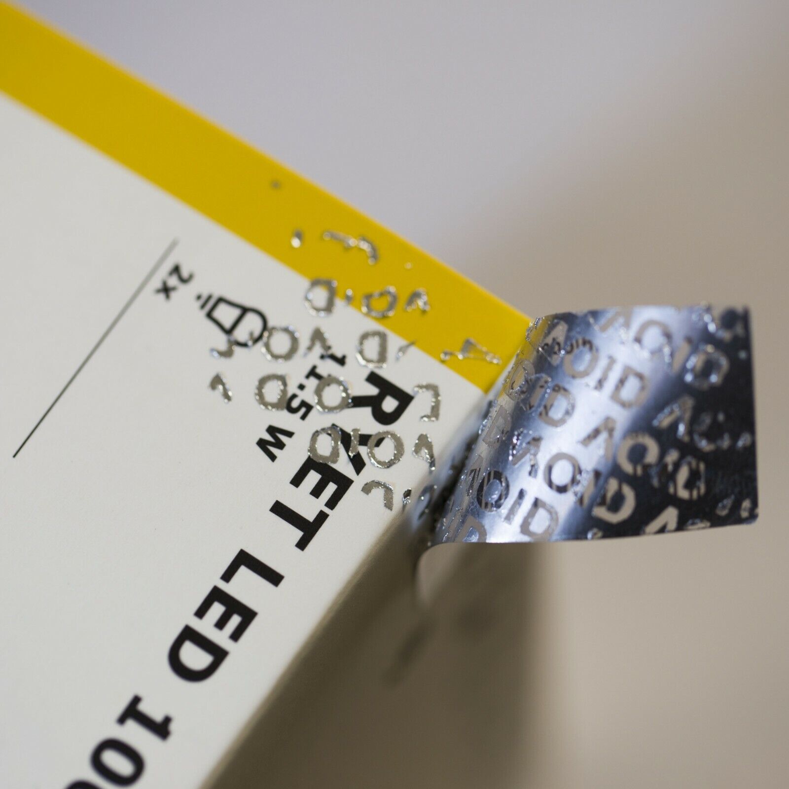 Ein Ablösen ohne sichtbare Beschädigung der Silberschicht ist unmöglich (Tamper-Evident-Effekt auf geeigneten Oberflächen).