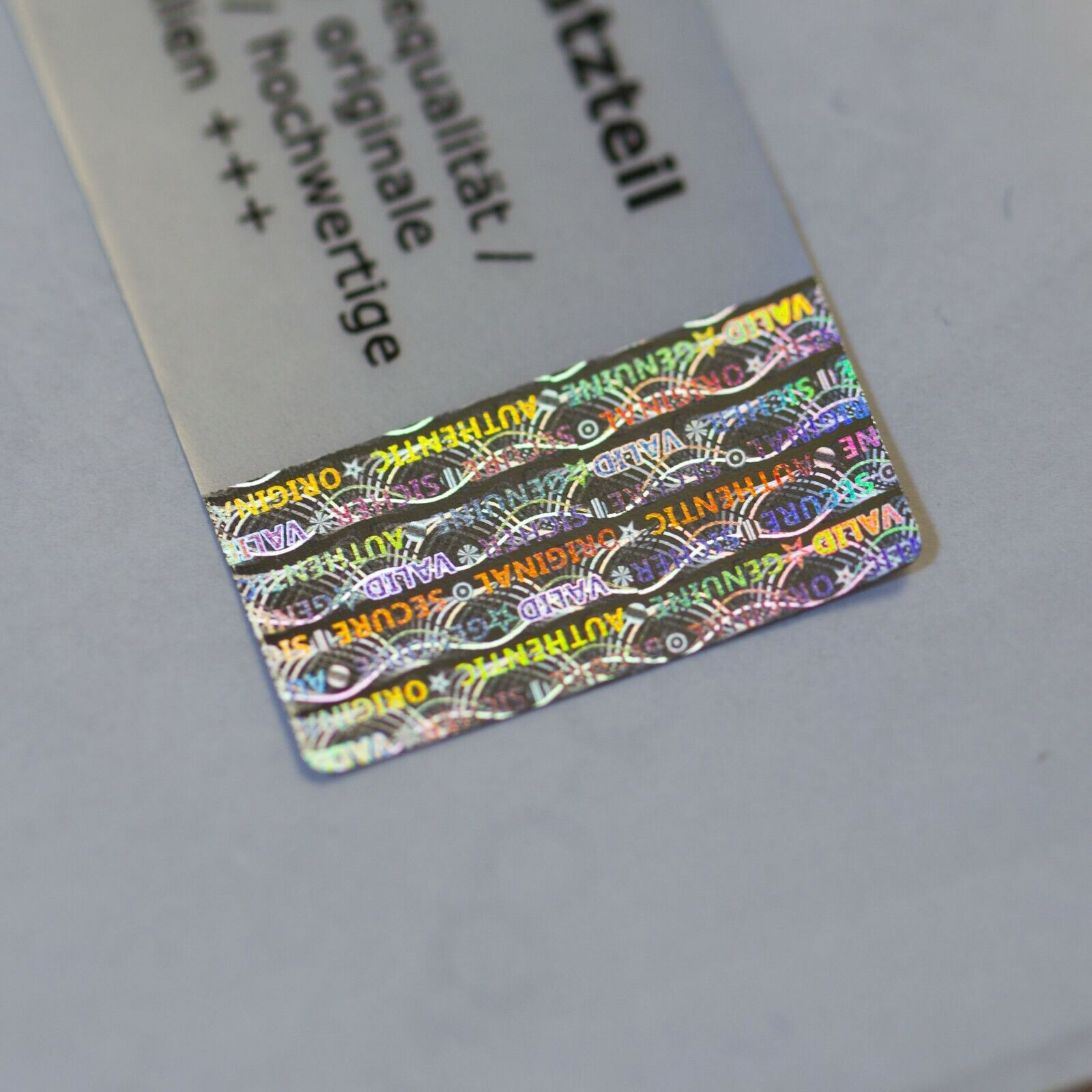 Der Hologrammstreifen mit Begriffen wie Genuine, Valid und Original erschwert Reproduktionen und dient als schnelles Echtheitsmerkmal.