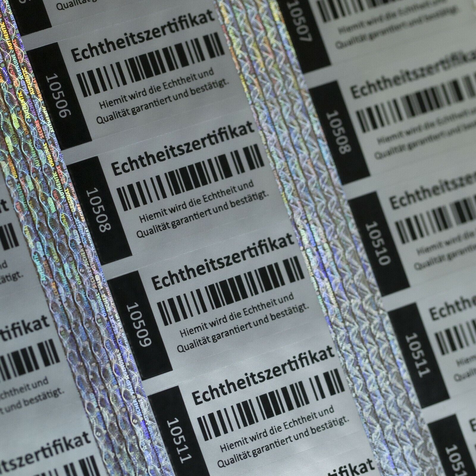 Echtheitszertifikat 5x2 cm mit Hologramm und Seriennummer