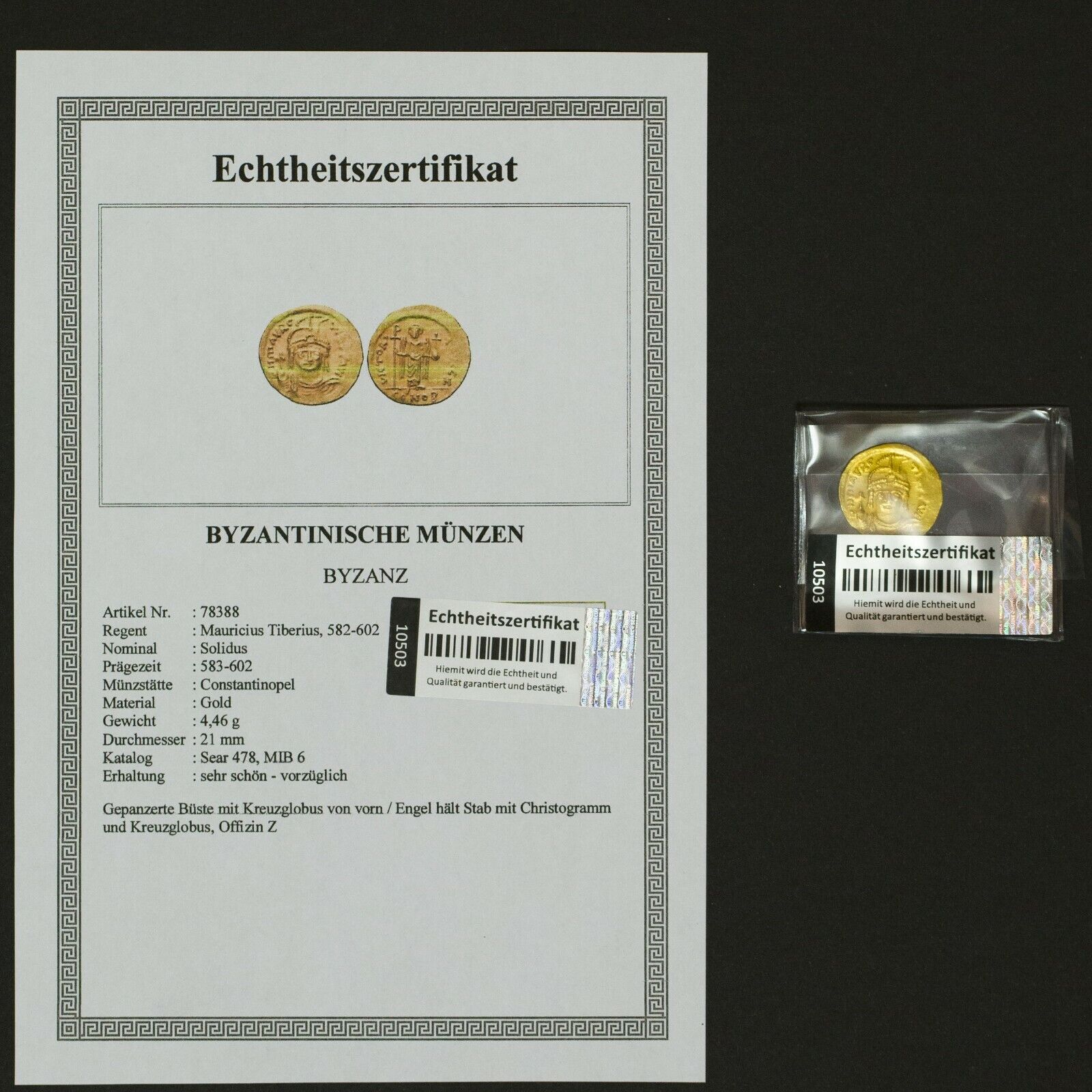 Achtung: Sie erhalten nur die Aufkleber mit Hologrammstreifen, wie auf Bild 1 gezeigt nicht das ausgedruckte Zertifikat und die Münze, dies soll nur ein Anwendungsbeispiel geben.