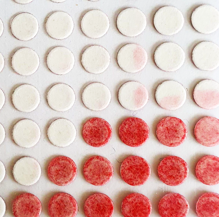 Einmal mit Flüssigkeit in Kontakt gekommen, bleibt die rote Färbung dauerhaft bestehen und kann nicht rückgängig gemacht werden.