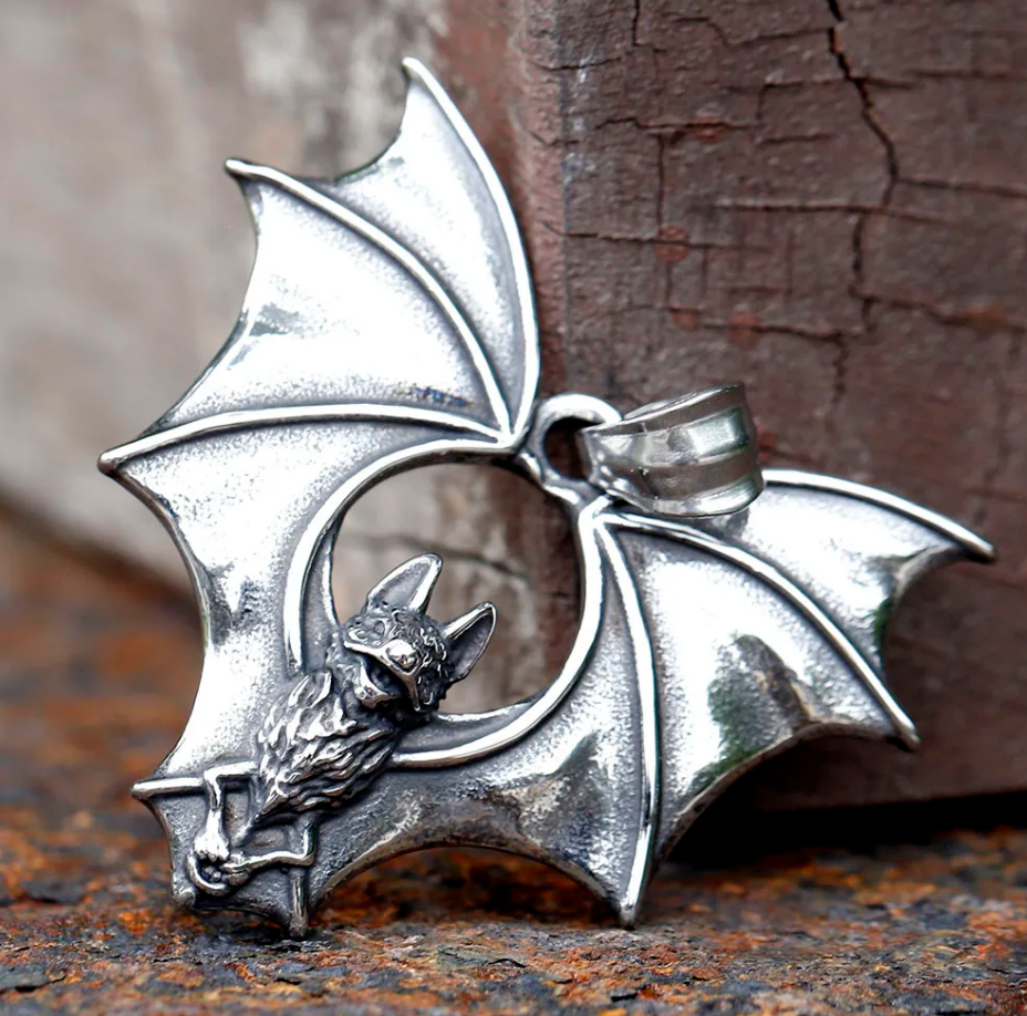 Fledermaus Fledertier Halskette Gothik Punk Anhänger Kette Edelstahl silber 60 cm