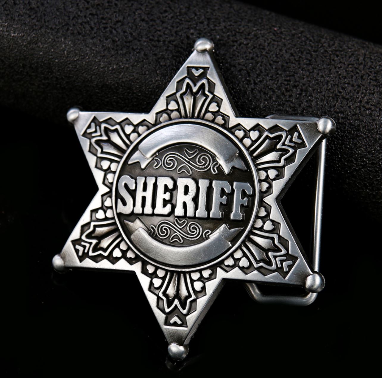 Gürtelschnalle Sheriffstern für Gürtel bis 4 cm Breite silber