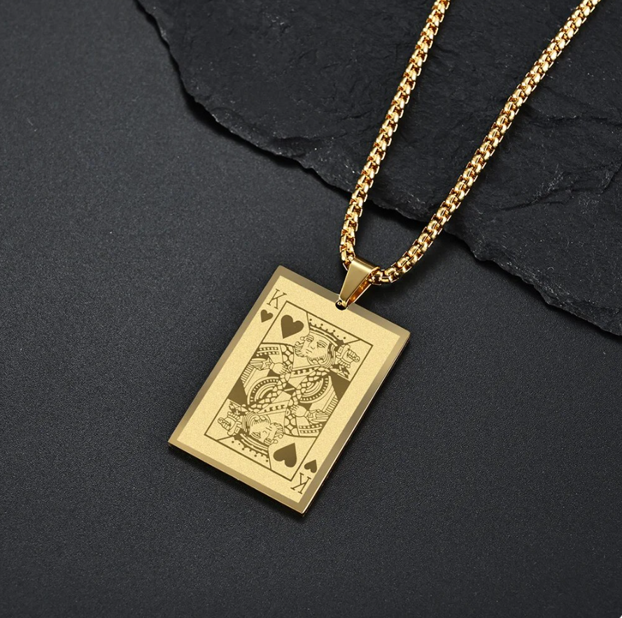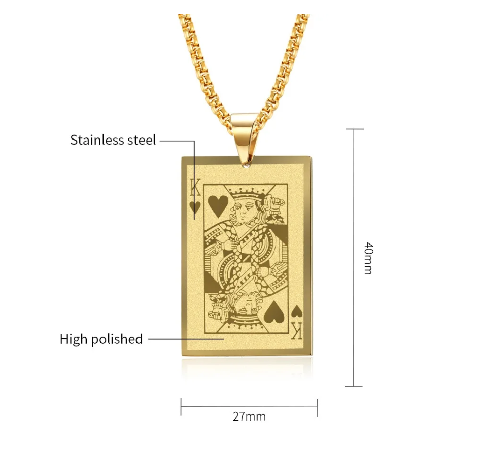 Produktinformationen "Halskette Poker Herz König Karte Edelstahl Gold 65cm Anhänger 4,0 x 2,7 cm"