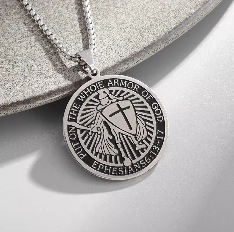 Motiv: Tempelritter + Aufschrift: "Put On Your Whole Armor Of God", "Ephesians 6:13-17"