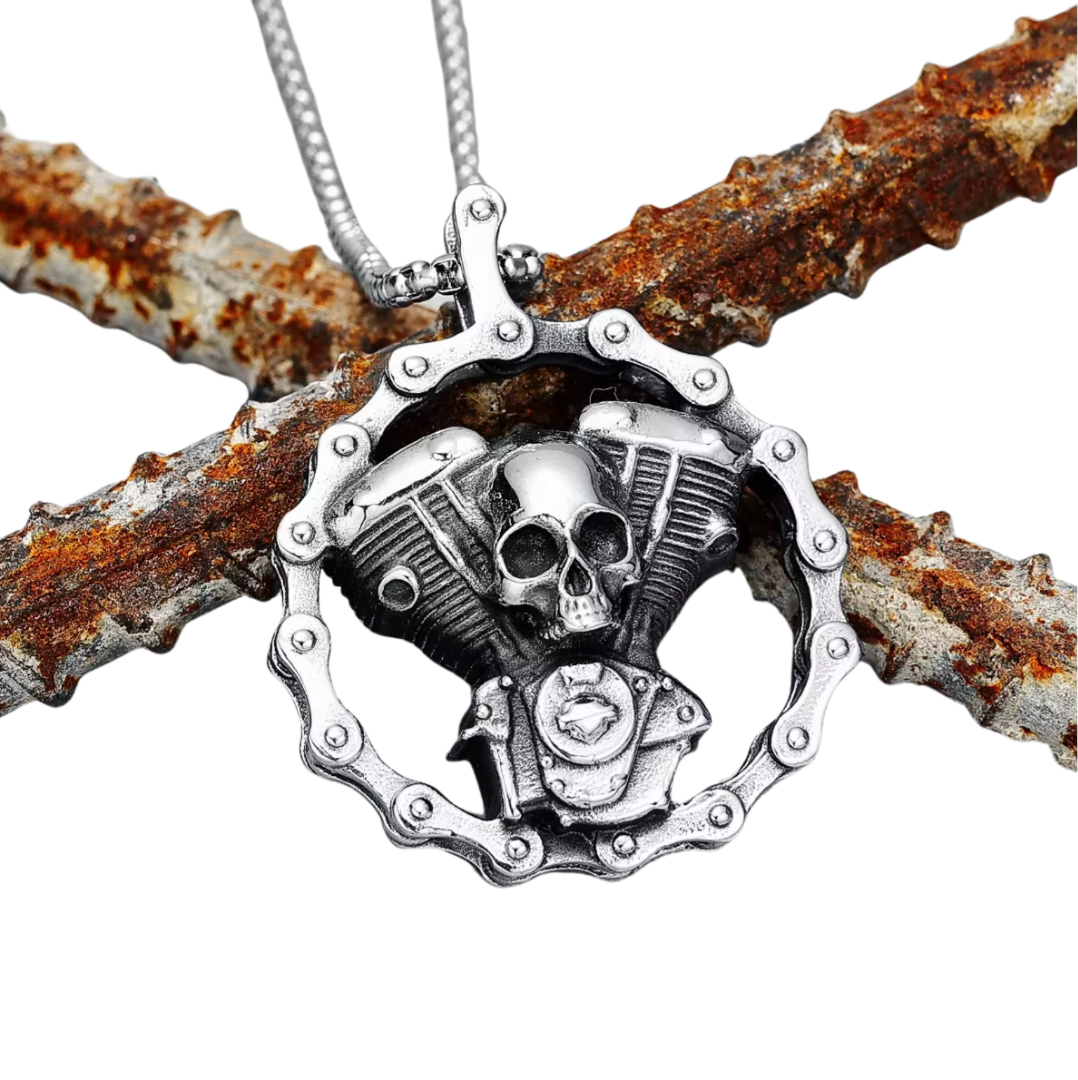 Halskette Totenkopf Motor 60 cm