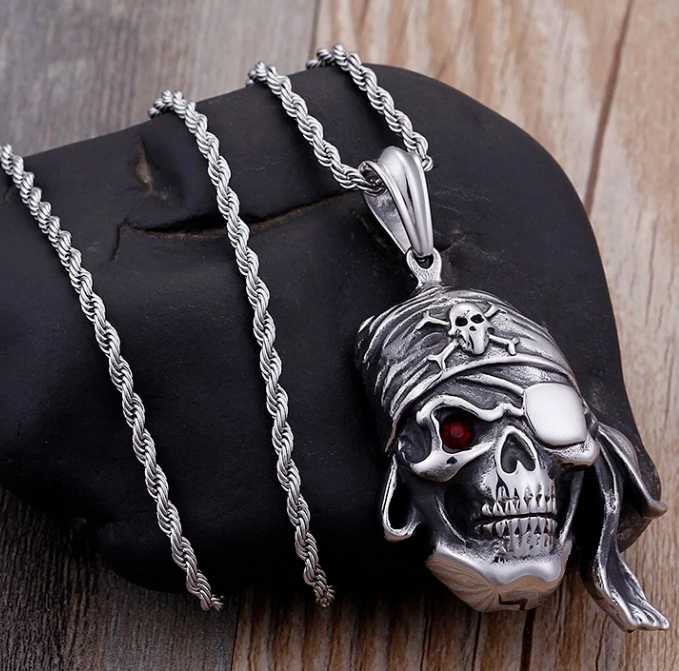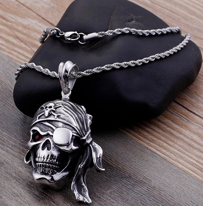 Halskette Totenkopf Pirat Augenklappe Schädel Anhänger Edelstahl Punk 60 cm