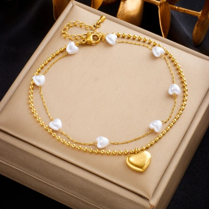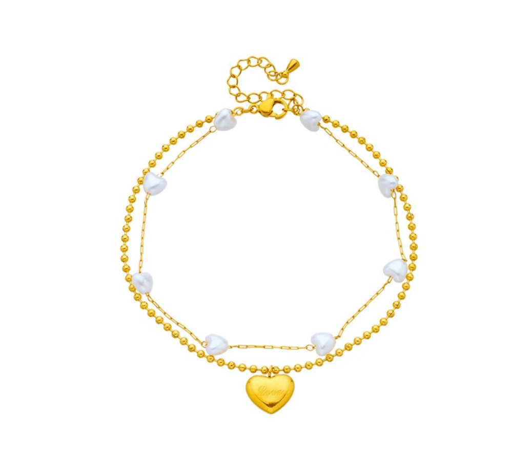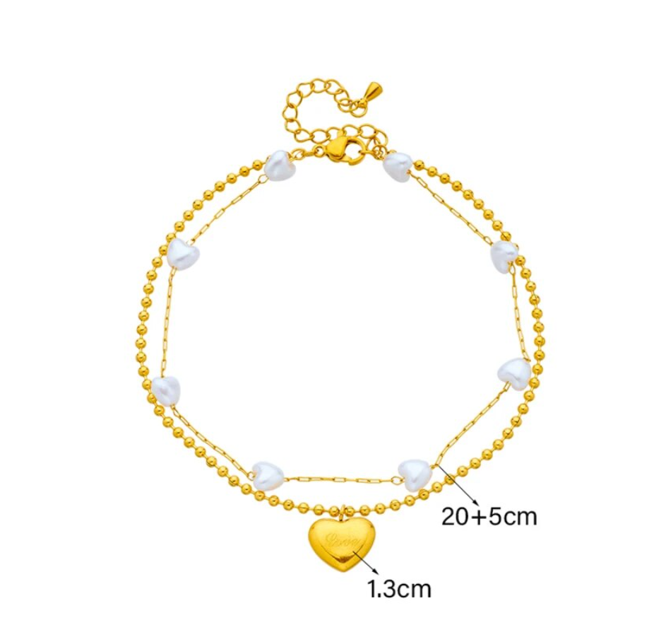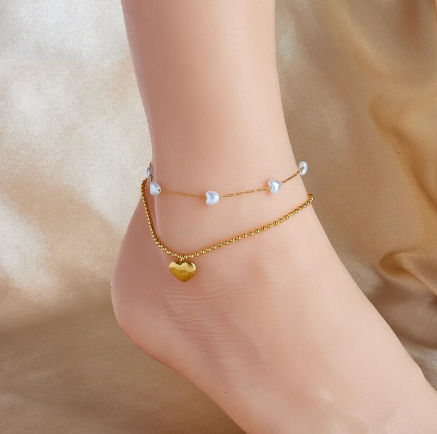 Hübsche Fußkette Herz Gold plattiert (vergoldet) 25 cm