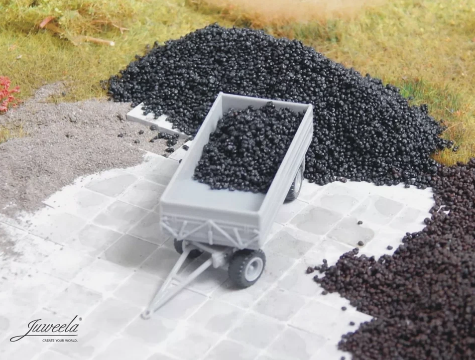 Stein-Kohle in Bruchstücken wie sie tonnenweise auf der Schiene oder der Straße rollte - ob in Schuttgutwaggon oder im LKW; und natürlich auch als Ladegut in Spur TT und Spur N.
