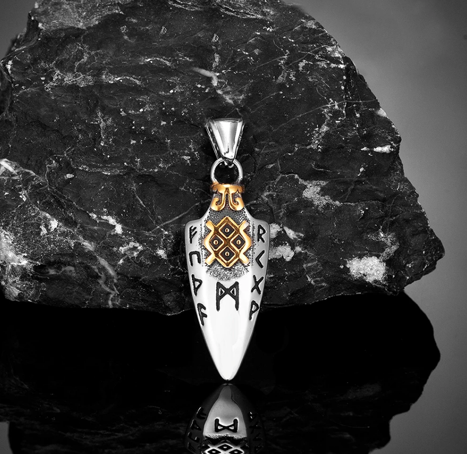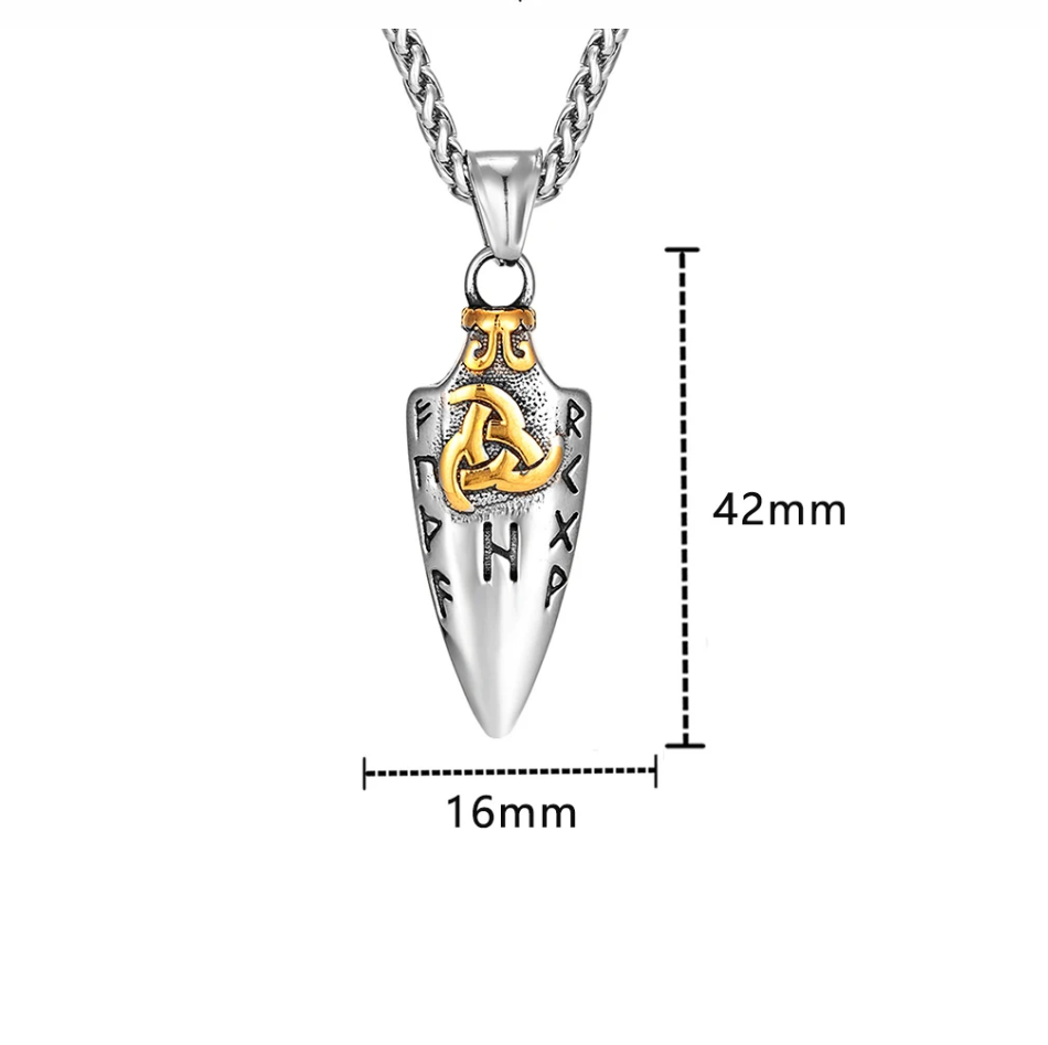 Nordische Halskette Odins Speer Keltisch Gungnir Valknut Rune Wikinger Gold 60cm