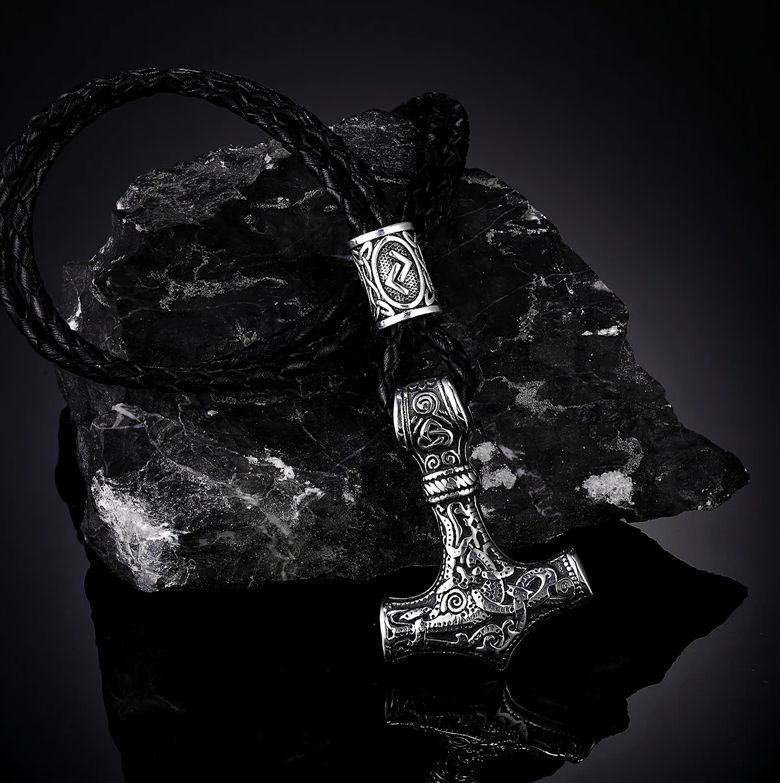 Nordische Halskette Thors Hammer Keltisch Mjölnir Vegvisir Wikinger Silber 60cm