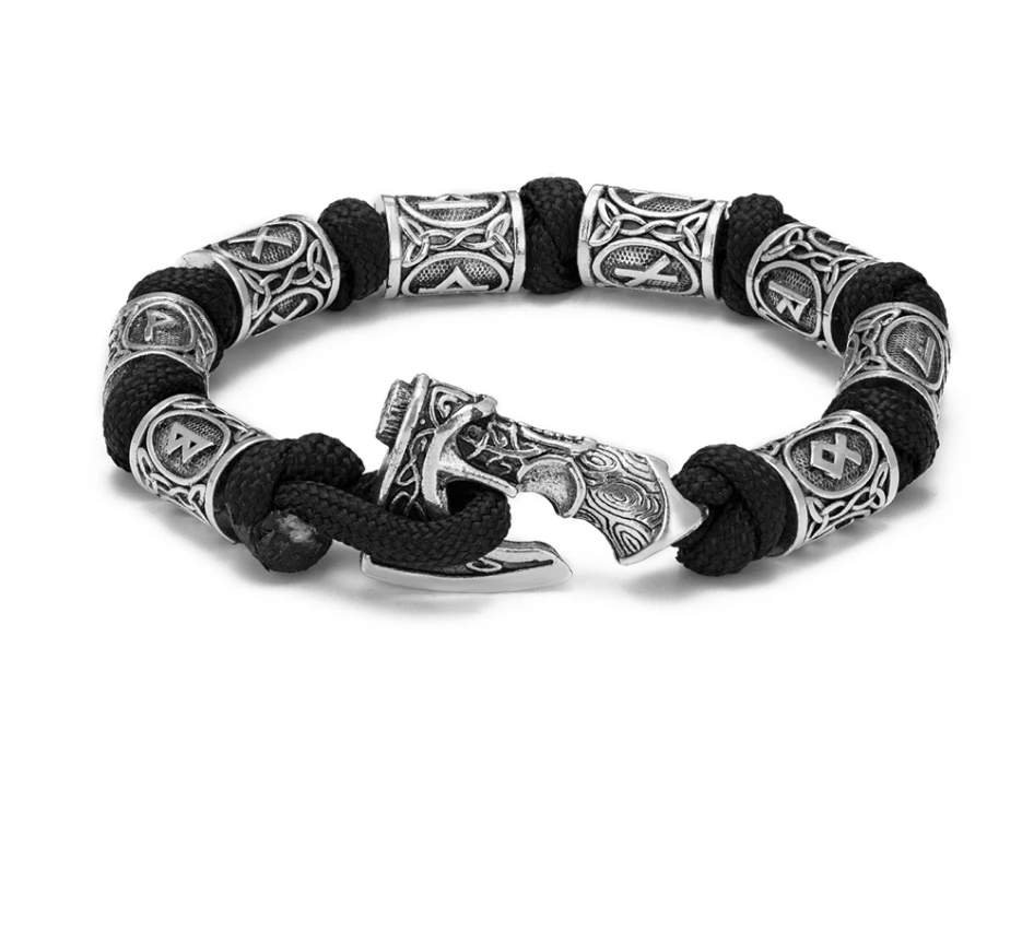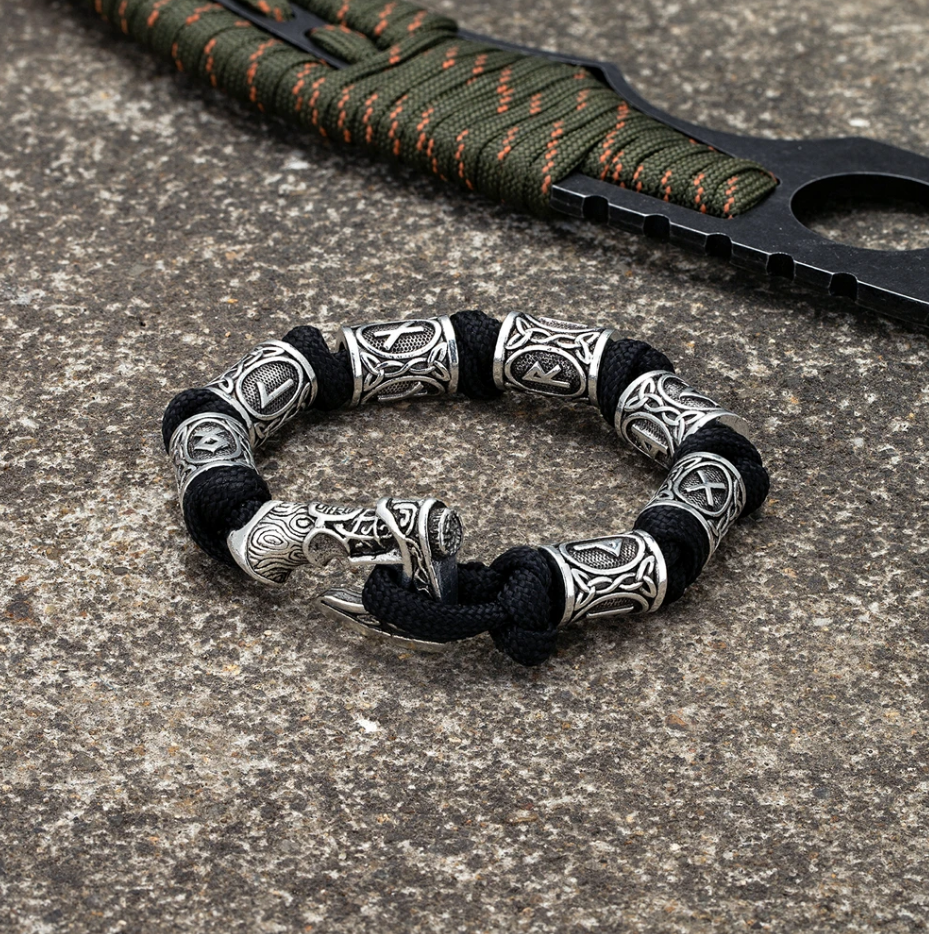 Produktinformationen "Nordisches Armband Keltisch Mjölnir Runen Wikinger Seil Amulett schwarz 21 cm"