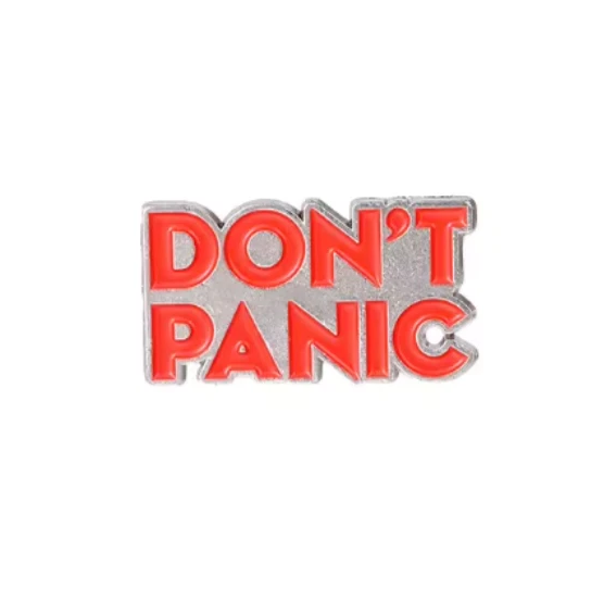 Pin „Don't Panic“ – Markanter Anstecker in Signalrot & Silber