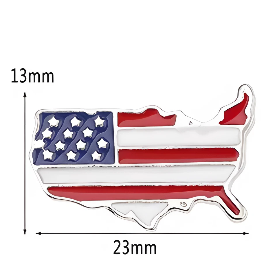 Ein Stück „American Way of Life“ für Ihr Outfit! Dieser detailreiche Anstecker präsentiert den charakteristischen Umriss der Vereinigten Staaten von Amerika, ausgefüllt mit dem lebendigen Muster der Nationalflagge. Mit seinem glänzenden silberfarbenen Rahmen ist dieser Pin ein ideales Accessoire für USA-Reisende, Austauschschüler oder als markantes Souvenir.
