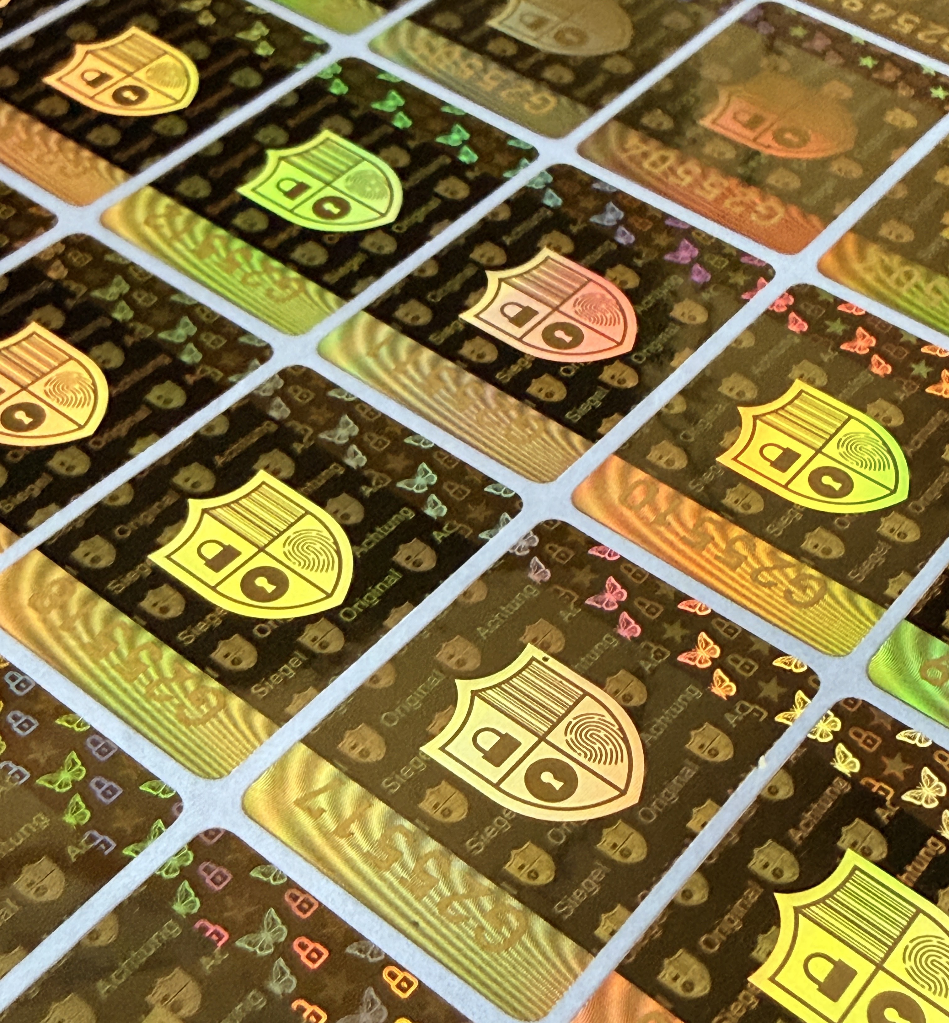 Produktinformationen "Premium Hologramm Aufkleber 20×28 mm – Sicherheitslabel – Gold – mit/ohne lfd. Nummer"
