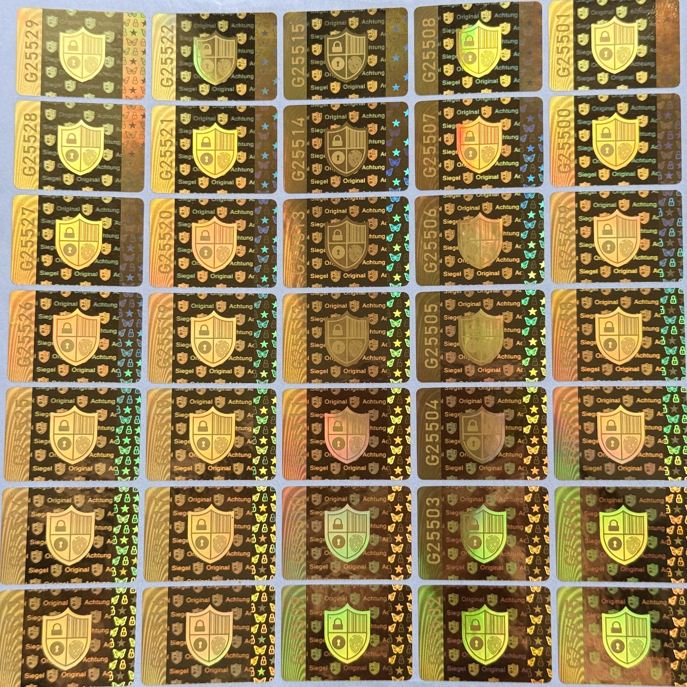 Premium Hologramm Aufkleber 20×28 mm – Sicherheitslabel – Gold – mit/ohne lfd. Nummer