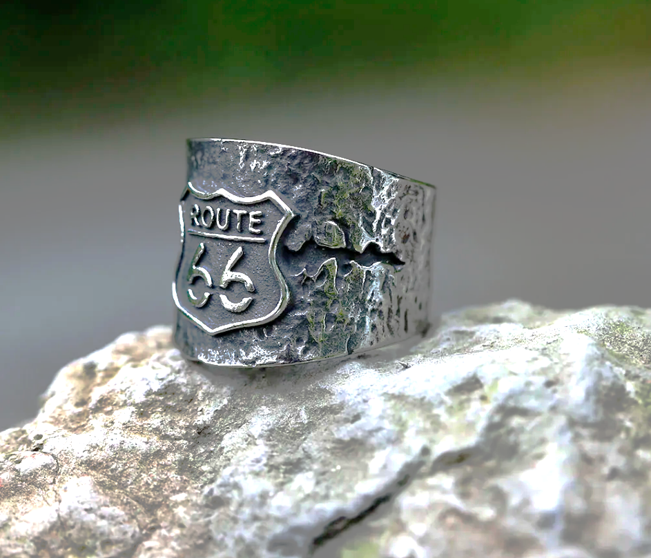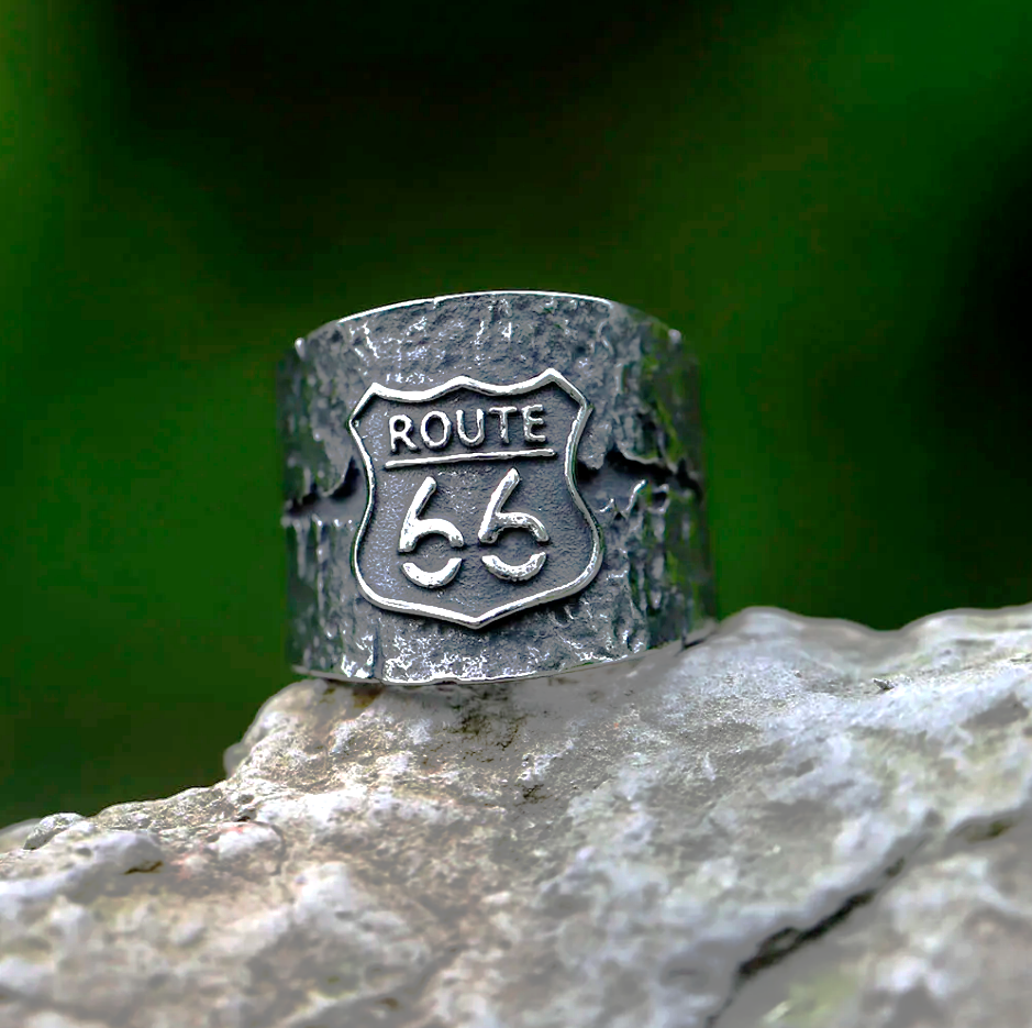 Ring Route 66 Biker Edelstahl silber Highway 66 Schmuck Herrenring
