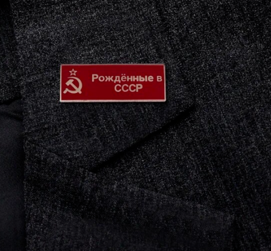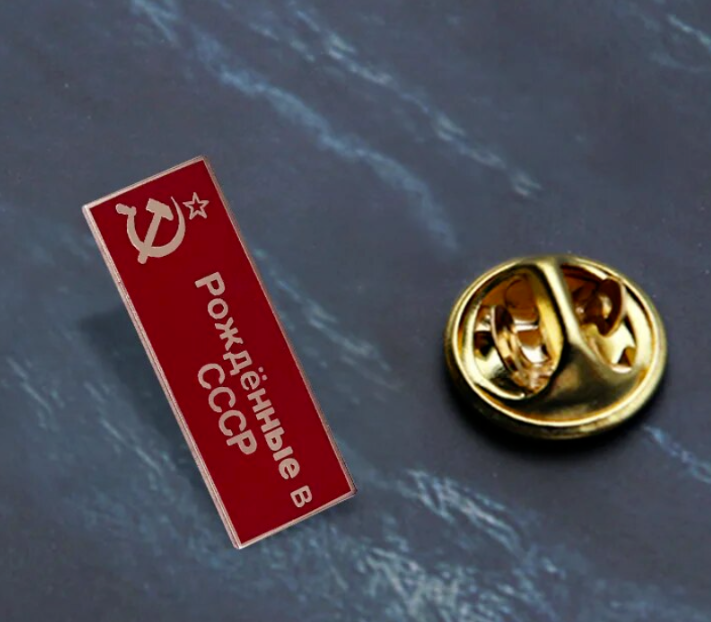 Russland ''Geboren in der Udssr'' CCCP Anstecker Hammer Sichel Stern