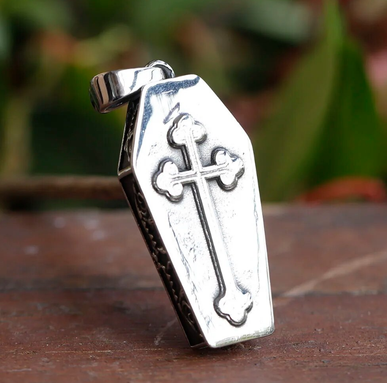 Sarg Halskette Skelett Liebe Gothik Punk Anhänger Kette Edelstahl silber 60 cm
