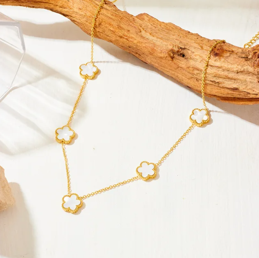 Produktinformationen "Schöne Halskette Blume Schmuck Edelstahl Gold plattiert (vergoldet) Weiß"