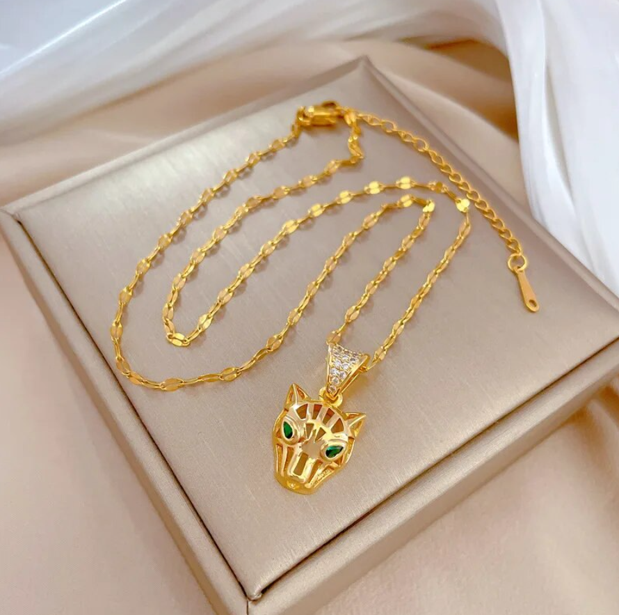 Schöne Halskette Leopard Katze Schmuck Edelstahl Gold plattiert (vergoldet)