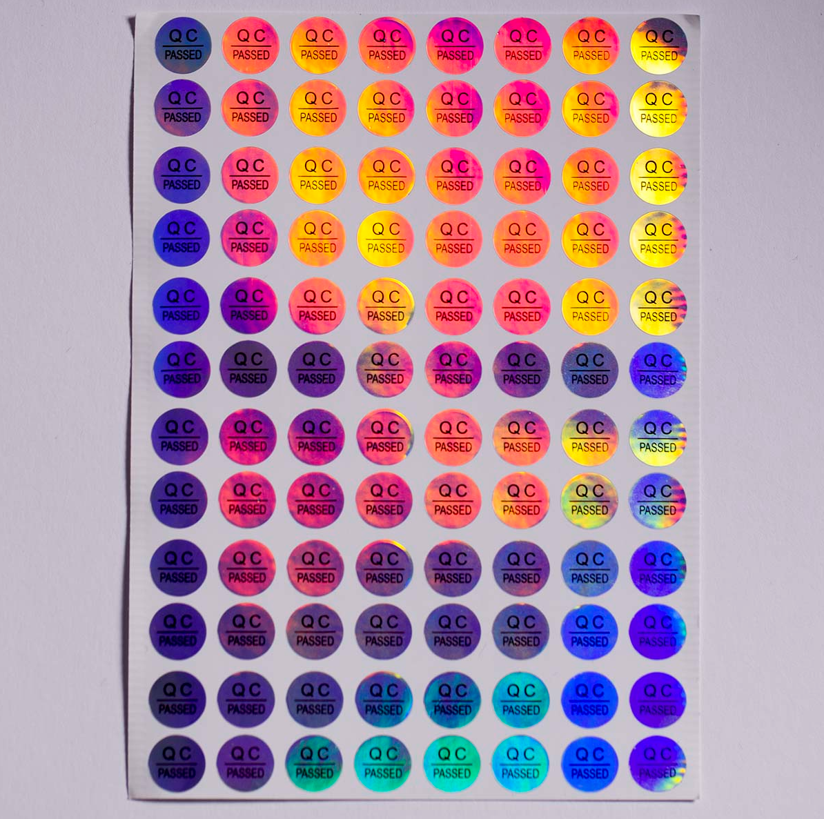 Dieses Kennzeichnungssiegel dient als klares visuelles Signal für Ihre durchgeführte Qualitätssicherung und wertet Ihre Waren durch die schillernde Oberfläche optisch auf.