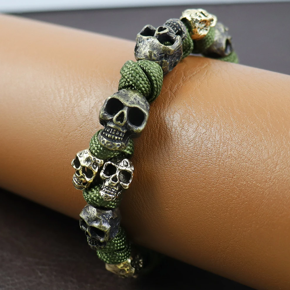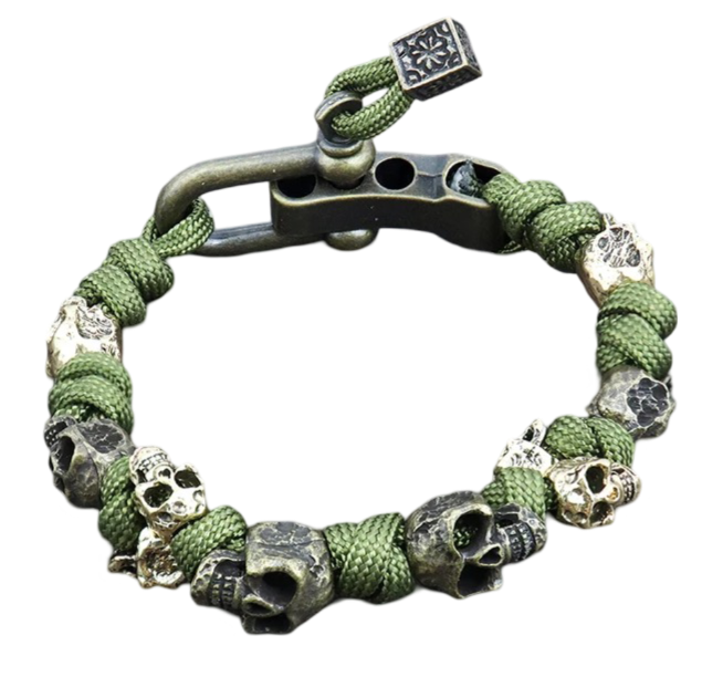Totenkopf Armband aus Paracord dunkelgrün